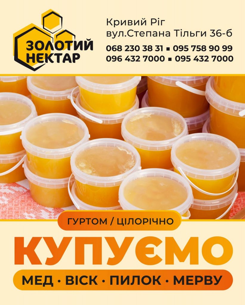 Компанія закуповує мед соняшник, ріпак оптом без антибіотика від 500 кг. Ціна договірна. Додаткова інформація за телефонами: (096) 432-70-00, (095) 4 ...