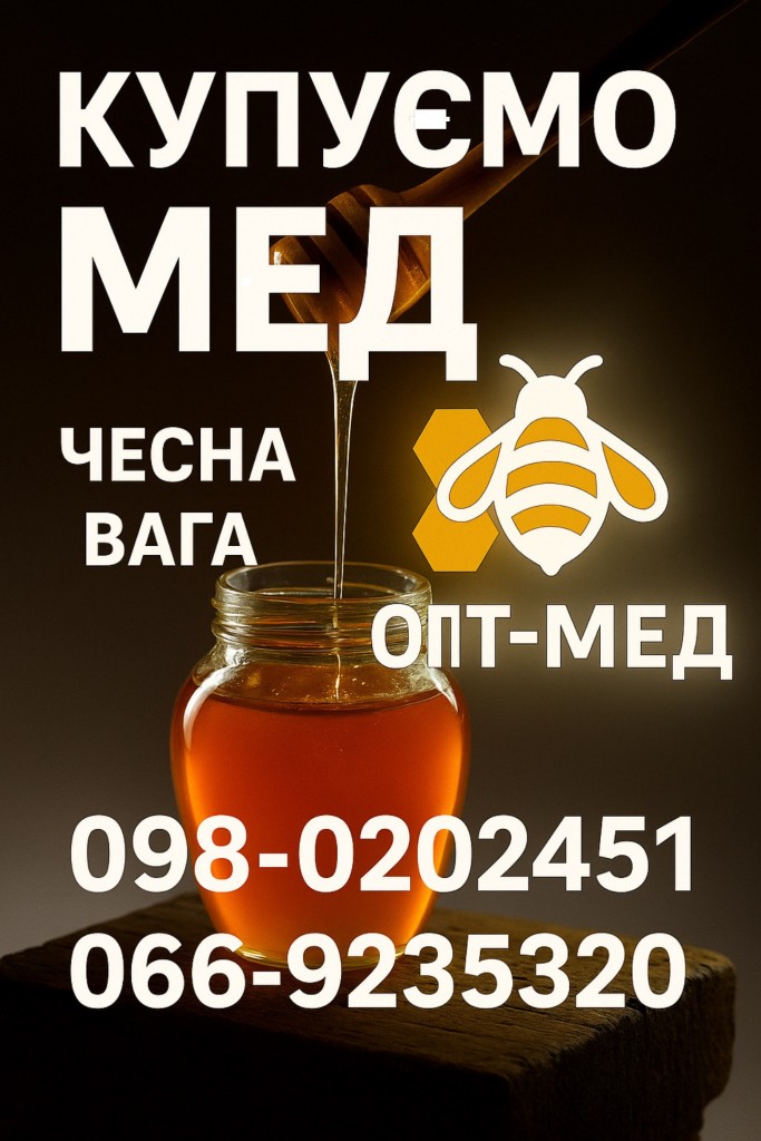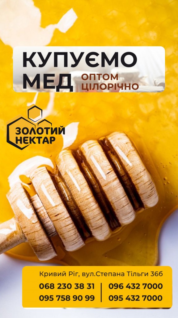 Компанія «Золотий нектар» закуповує мед від 300 кг без антибіотика. Розрахунок відразу 100%. Доставка нашим автотранспортом з гідробортом. За д ...