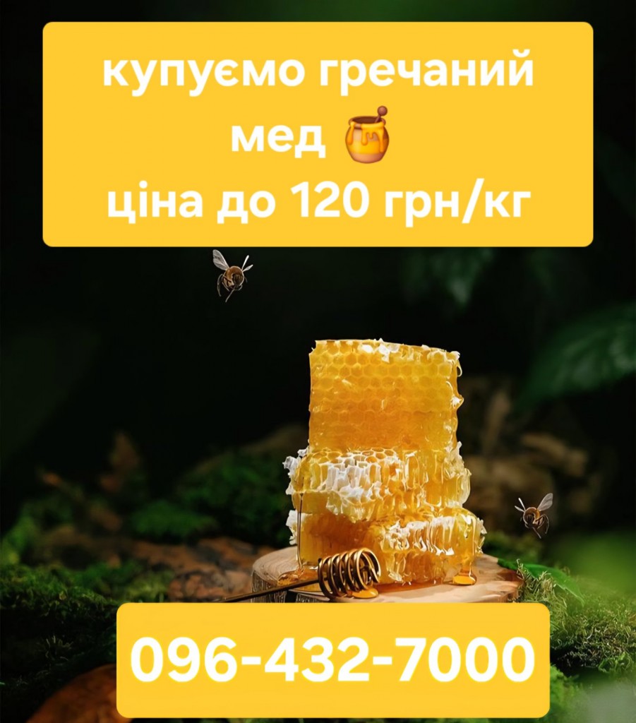 Закуповуємо мед гречаний врожаю 2025 року оптом без антибіотика від 300 кг. Ціна до 120 грн/кг Самовивіз власним автотранспортом з гідробортом. Додатк ...