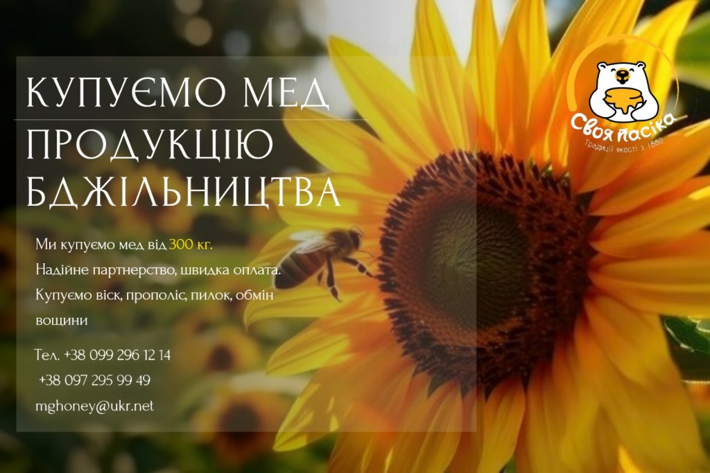 ТОВ “Мідоу” м. Харків закуповує соняшниковий мед від 300 кг. Чернігівська область, розрахунок на місці. Тел. +380660990966, +380980909209