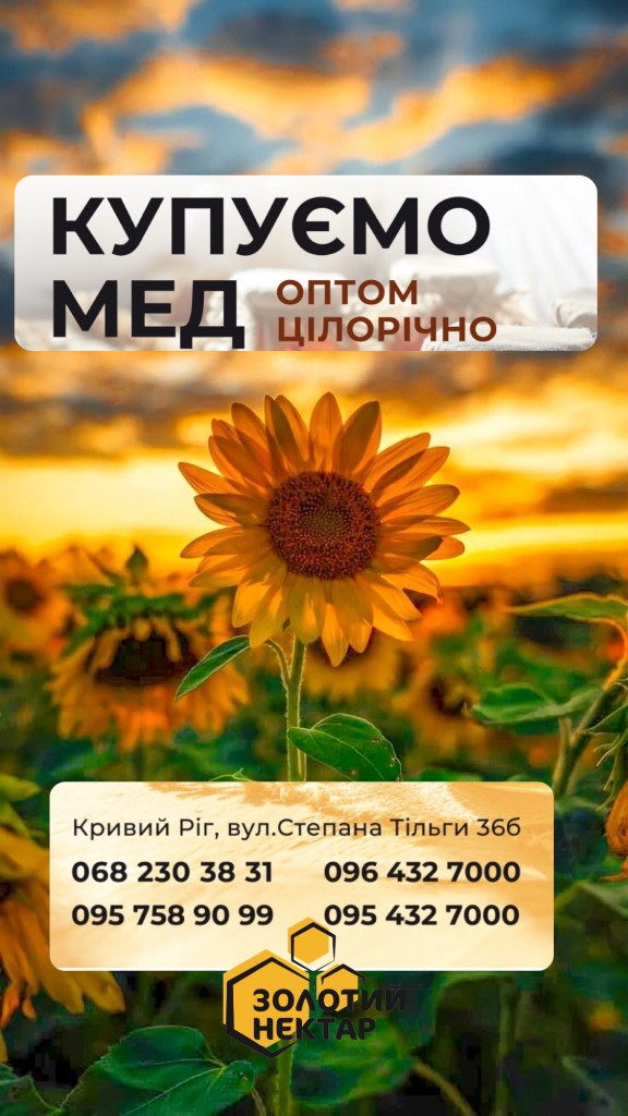 ТОВ “Мідоу” м. Харків закуповує соняшниковий мед у Харківській області. Від 300 кг., розрахунок на місці. Тел. +380660990966, +380980909209