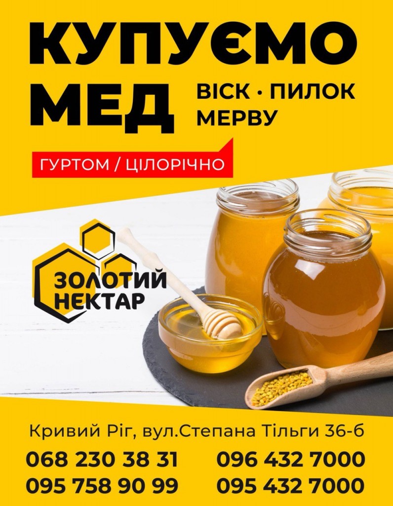ТОВ “Мідоу” м. Харків закуповує соняшниковий мед у Сумській та Полтавській області. Від 300 кг, розрахунок на місці. Тел. +380660990966, +38098090920 ...